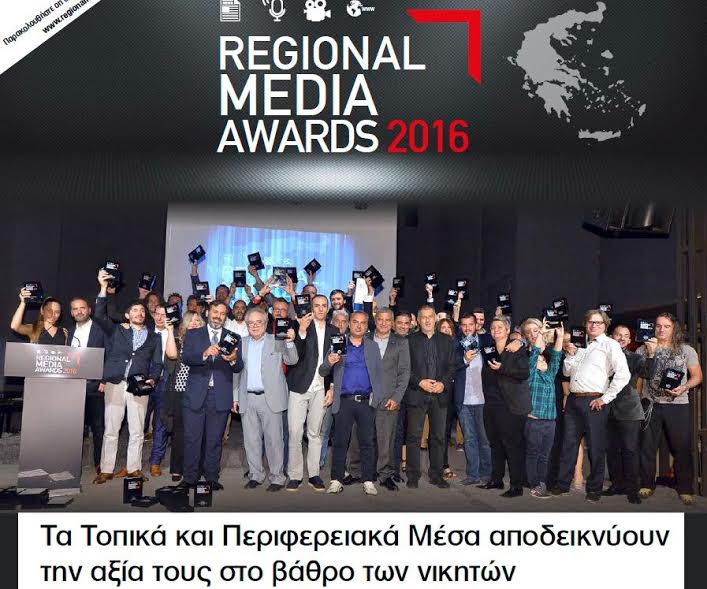 ΒΡΑΒΕΥΣΗ ΚΑΙ ΠΑΝΕΛΛΑΔΙΚΗ ΔΙΑΚΡΙΣΗ ΤΗΣ ΙΣΤΟΣΕΛΙΔΑΣ “GRAFIDA.ΝΕΤ” ΣΤΑ REGIONAL MEDIA AWARDS 2016