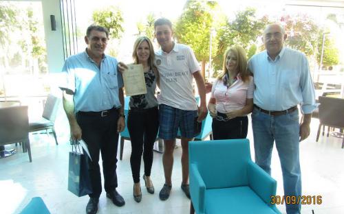 Ακολούθησαν αναμνηστικές φωτογραφίες με τον Αντιδήμαρχο και με τα μπλουζάκια της εκδήλωσης «Η Ρόδος για τη Ζωή», στην οποία το 4ο ΓΕΛ μετέχει ενεργά.