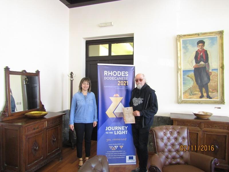 Η Διεύθυνση Τουρισμού του Δήμου Ρόδου τίμησε επαναλαμβανόμενο επισκέπτη του νησιού την Τετάρτη 2 Νοεμβρίου 2016. Την απονομή της τιμητικής διάκρισης έκανε ο Δήμαρχος Ρόδου κύριος Φώτης Χατζηδιάκος παρουσία της Αντιδημάρχου Τουρισμού, Διεθνούς Προβολής και Απόδημων Ροδίων κυρίας Μαρίζας Χατζηλαζάρου.