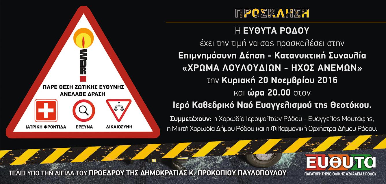 Ο Δήμος Ρόδου - ΔΟΠΑΡ στηρίζει την εκδήλωση της ΕΥΘΥΤΑ ΡΟΔΟΥ για την Παγκόσμια ημέρα μνήμης για τα θύματα τροχαίων.