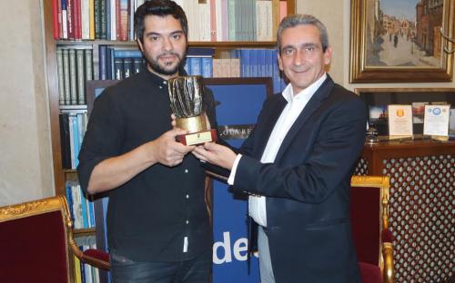 Με τον Ρόδιο σεφ Σταμάτη Μισομικέ, που πριν από λίγες ημέρες απέσπασε τον τίτλο του Ευρωπαίου Νέου Σεφ (European Young Chef) για το 2016, συναντήθηκε σήμερα ο Περιφερειάρχης Νοτίου Αιγαίου κ. Γιώργος Χατζημάρκος.