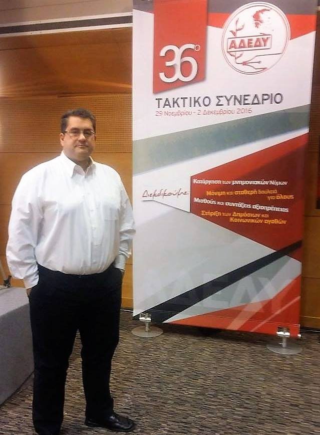 Θα ήθελα να ευχαριστήσω από τα βάθη της καρδιάς μου όλους και όλες που με τίμησαν με την ψήφο τους και εκλέχθηκα στις πρώτες θέσεις στο Γενικό Συμβούλιο της Α.Δ.Ε.Δ.Υ. στο πρόσφατο 36ο συνέδριό της (29.11 - 2.12.2016) με το ψηφοδέλτιο της Δ.Α.Κ.Ε. Δημοσίου Τομέα.