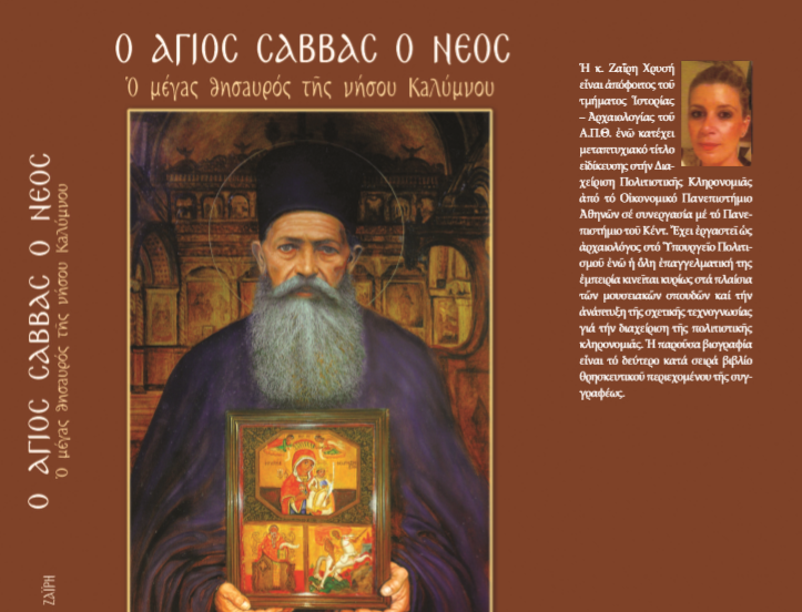 Η βιογραφία του Αγίου Σάββα, αποτελεί μία ανανεωμένη έκδοση του βίου του Αγίου. Περιλαμβάνει βιογραφικά στοιχεία του θαυματουργού Αγίου, ιστορικές μαρτυρίες της θεοφιλούς ζωής του, την όλη αλληλογραφία σχετικά με την αγιοκατάταξή του, μαρτυρίες σχετικές με τον οσιακό του βίο, καθώς και δεκάδες θαυμαστές επεμβάσεις προς ίαση πιστών. Το βιβλίο, διατίθεται στην Ιερά Μονή Αγίων Πάντων νήσου Καλύμνου και όλα τα έσοδα από τις πωλήσεις θα καλύψουν τις ανάγκες της Ιεράς Μονής Αγίων Πάντων και της Ιεράς Μητρόπολης Καλύμνου. Διαβάστε ολόκληρη τη συνέντευξη: