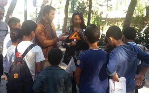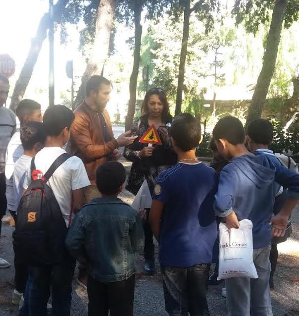 Στο Πάρκο Κυκλοφοριακής Αγωγής της οδού Δημοκρατίας, μικρά προσφυγόπουλα, για να παρακολουθήσουν ενημέρωση κυκλοφοριακής αγωγής