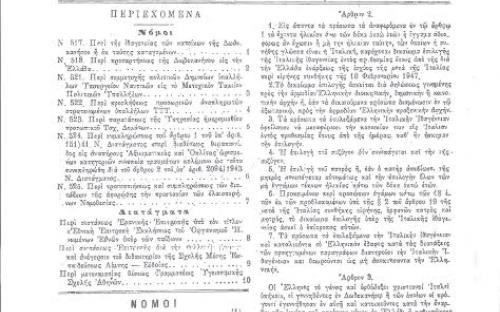 Το Νομοσχέδιο κατετέθη στην Βουλή 2 Δεκεμβρίου 1947, εψηφίσθη, 9 Δεκεμβρίου 1947 και εδημοσιεύθη στην Εφημερίδα της Κυβερνήσεως, στο Τεύχος Πρώτον, Φύλλον 7, στις 9 Ιανουαρίου 1948.