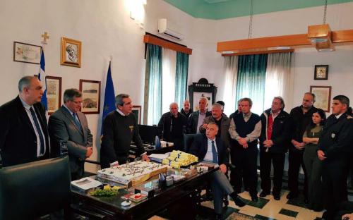 Μετά το πέρας των εγκαινίων του Τμήματος Μεταφορών και Επικοινωνιών, ακολούθησε στο γραφείο του Επάρχου κ. Γιάννη Μηνατσή η κοπή της βασιλόπιτας του Επαρχείου και έγινε ο απολογισμός έργου της Περιφερειακής Ενότητας Καρπάθου και Κάσου.