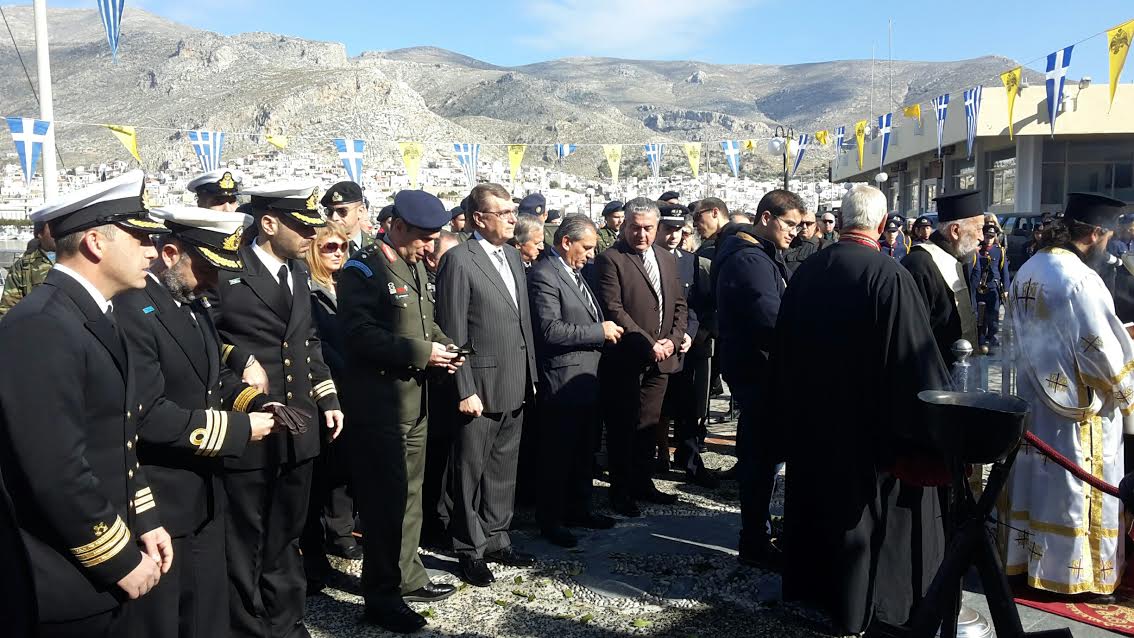 “Σήμερα αποτίνουμε φόρο τιμής στους ανθρώπους εκείνους που θυσίασαν τη ζωή τους στα Ίμια, «τοις κείνων ρήμασι πειθόμενοι». Ήταν ο Υποπλοίαρχος Παναγιώτης Βλαχάκος, ο Υποπλοίαρχος Χριστόδουλος Καραθανάσης και ο Αρχικελευστής Έκτορας Γιαλοψός. Ελπίζω ολόψυχα το μέλλον να μη μας επιφυλάσσει άλλους λόγους για ανάλογες επετείους. Προσφέρουμε κλάδο ελαίας στη φίλη γείτονα Τουρκία και ζητούμε την ίδια συμπεριφορά από αυτήν. Οι οποιεσδήποτε διαφορετικές απόψεις θα πρέπει να λύνονται στα διεθνή δικαστήρια με σεβασμό, πάντα, των διεθνών συνθηκών και τους διεθνούς διακαίου και όχι με στρατιωτικές αντιπαραθέσεις. Πάνω σε αυτά στηρίχθηκε η φιλία των δύο λαών μας που οι δύο μεγάλοι μας πολιτικοί Ελευθέριος Βενιζέλος και Κεμάλ Ατατούρκ εμπράκτως μας κατέλειπαν ως παρακαταθήκη. Το Αιγαίο είναι η θάλασσα που θα πρέπει να ενώνει και να μη διχάζει τις δύο χώρες μας.»