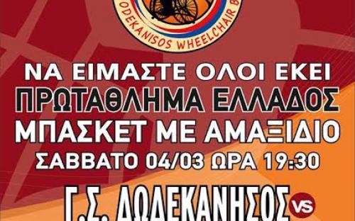 Η αντίστροφη μέτρηση για την πρεμιέρα του νέου πρωταθλήματος στο μπάσκετ με αμαξίδιο της Ο.Σ.Ε.Κ.Α. έφτασε… Ο Γ.Σ. Δωδεκάνησος υποδέχεται το Σάββατο στις 19:30, στο «Βενετόκλειο», το νεοσύστατο Ηράκλειο για τον όμιλο νότου και θέλει να κάνει ιδανικό ξεκίνημα, αφού και φέτος στόχος είναι η κατάκτηση του τίτλου στο φάιναλ-φορ που θα διεξαχθεί στο κλειστό γυμναστήριο της Κω. Η ομάδα μας συνεχίζει την προετοιμασία της για την αναμέτρηση της πρεμιέρας, με τον προπονητή Αντώνη Μαρκάκη και το γυμναστή Γιώργο Μποσγανά να έχουν όλους τους παίκτες στη διάθεσή τους. Ο Γ.Σ. Δωδεκάνησος, η διοίκηση, οι αθλητές και το προπονητικό επιτελείο περιμένουν όλο το φίλαθλο κόσμο στο πλευρό της ομάδας. Η είσοδος θα είναι ελεύθερη και με σύνθημα «ο ένας για τον άλλο, όλοι για όλους, αγάπα τον πλησίον σου», ο Γ.Σ. Δωδεκάνησος ρίχνεται στη μάχη της διάκρισης. Οι κυπελλούχοι ΕΛΛΑΔΑΣ σε περιμένουν και φέτος στο «Βενετόκλειο»…