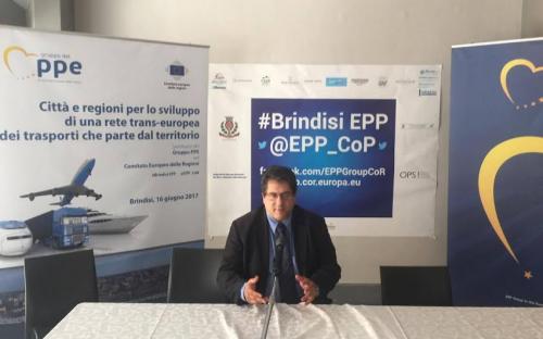 Στη συνεδρίαση του Ευρωπαϊκού Λαϊκού Κόμματος (Ε.Λ.Κ./ E.P.P.) της Επιτροπής των Περιφερειών της Ε.Ε. παρέστη και μίλησε ο Αντιπεριφερειάρχης κ. Χ. Κόκκινος που συμμετείχε μαζί με την αποστολή της Εθνικής μας Αντιπροσωπείας. Η εκδήλωση πραγματοποιήθηκε στο Πρίντεζι της Ιταλίας στις 16.6.2017 και είχε ως θέμα: «Οι Περιφέρειες και οι Δήμοι αναπτύσσουν Εδαφικό Διευρωπαϊκό Δίκτυο Μεταφορών». Κεντρικοί ομιλητές ήταν ο κ. Antonio Tajani, Πρόεδρος του Ευρωπαϊκού Κοινοβουλίου και ο Michael Schneider, Πρόεδρος της ομάδας του Ευρωπαϊκού Λαϊκού Κόμματος στην Ευρωπαϊκή Επιτροπή των Περιφερειών.