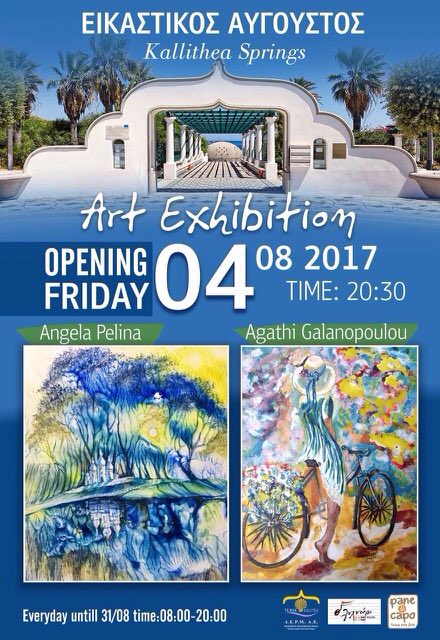 Στα πλαίσια του Εικαστικού Αυγούστου των Πηγών Καλλιθέας θα φιλοξενηθούν στο μνημείο των Ιαματικών Πηγών οι εκθέσεις ζωγραφικής της κας Άντζελας Πελίνας και της κας Αγαθής Γαλανοπούλου.