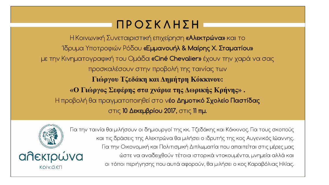Ο Γιώργος Σεφέρης στα χνάρια της Δωρικής Κρήνης - Εκδήλωση από την Αλεκτρώνα και το Ίδρυμα Σταματίου