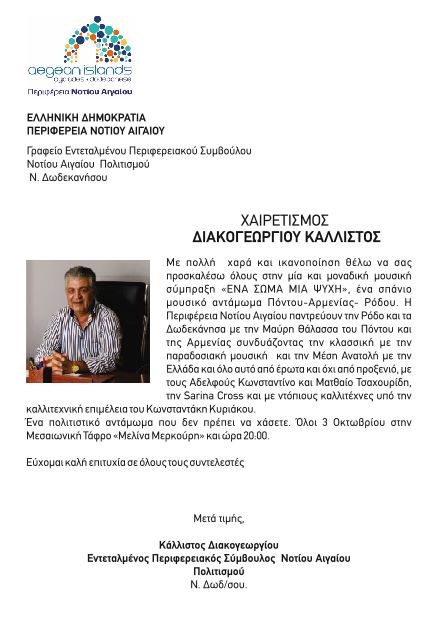ΠΕΡΙΦΕΡΕΙΑ ΝΟΤΙΟΥ ΑΙΓΑΙΟΥ - ΕΝΑ ΣΩΜΑ - ΜΙΑ ΨΥΧΗ: ΡΟΔΟΣ, ΠΟΝΤΟΣ, ΑΡΜΕΝΙΑ