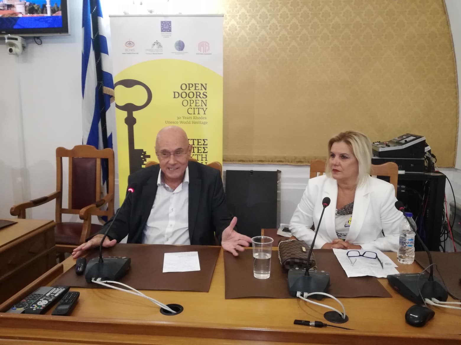 Ο δήμαρχος Ρόδου κ. Φώτης Χατζηδιάκος, αναφέρθηκε στην πολιτιστική κληρονομιά, που αναπτύχθηκε, ταυτόχρονα με την αειφόρο ανάπτυξη. Ο πρώην Δήμαρχος Ρόδου κ. Σάββας Καραγιάννης, επί ημερών του οποίου, η Μεσαιωνική Πόλη εντάχθηκε στην UNESCO, αναφέρθηκε στο θαύμα αυτό της Αιώνιας Πόλης. Η Αναπληρώτρια Γενική Γραμματέας του Οργανισμού Πόλεων Παγκόσμιας Κληρονομιάς κ. Λη Μηναϊδη, τόνισε τις προκλήσεις και τις ευκαιρίες που αναπτύσσονται σε τόπους, όπου υπάρχει έντονο το στίγμα της Παγκόσμιας Κληρονομιάς. Ο Διευθυντής ε.τ. Ευρωπαϊκής Επιτροπής και Υπεύθυνος για θέματα Κυκλικής Οικονομίας και Νησιωτικότητας κ. Γιώργος Κρεμλής, ανέπτυξε τη σχέση Κυκλικής Οικονομίας και Τουρισμού. Τέλος, ο πρώην Πρόεδρος του Συλλόγου Μονίμων Κατοίκων Μεσαιωνικής Πόλης κ. Ζαφείρης Σκανδαλιάρης, έκανε μια ιδιαιτέρως ενδιαφέρουσα εισήγηση, για τη ζωή, πέρα από τα τείχη… Η εορταστική εκδήλωση που ακολούθησε στον εξωτερικό χώρο του Περιφερειακού Μεγάρου, με θέα το συγκλονιστικό ροδίτικο τοπίο, ήταν εκπληκτική.
