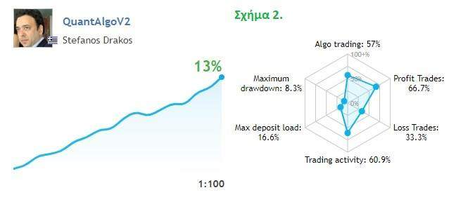 Αντί τώρα των κλασικών μεθόδων τεχνικής ανάλυσης τα μεγάλα fund χρησιμοποιούν αλγόριθμους τεχνητής νοημοσύνης. Ένα τέτοιο σύστημα αλγοριθμικών συναλλαγών βασισμένο στη μηχανική μάθηση ανέπτυξα προσωπικά το 2016 χρησιμοποιώντας αντί για τις τιμές των μετοχών ή των ισοτιμιών, δείκτες τεχνικής ανάλυσης, οι οποίοι προκύπτουν από μαθηματικά αξιολόγησης της συνεισφοράς τους στο αποτέλεσμα. Εκπαιδεύοντας το σύστημα αυτό στην αγορά FOREX (ισοτιμιών) σε ωριαίες συναλλαγές EUR/USD προκύπτουν ετήσια αποτελέσματα σε ανάδρομες αναλύσεις από το 2010-2015 που φτάνουν το 110%, ενώ σε πραγματικό χρόνο από 15-30/10/2018 (13 εργάσιμες μέρες) με 102 ωριαίες συναλλαγές (σχήμα 1) παρουσιάζοντας ποσοστό επιτυχίας συναλλαγών 66.7% και κέρδος σε 13.22%. Αντίστοιχα με 1.171 συναλλαγές από 18/5-15/9 του 2017 ο αλγόριθμος παρουσίασε ποσοστό επιτυχίας 73,4% και ποσοστό κέρδους 65%.