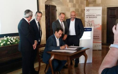 30 χρόνια μετά την ένταξη της Μεσαιωνικής Πόλης της Ρόδου, στον κατάλογο Μνημείων της UNESCO, το Σάββατο 3 Νοεμβρίου υπεγράφη στη Ρόδο, Μνημόνιο Συνεργασίας μεταξύ του Υπουργείου Πολιτισμού, του Υπουργείου Ναυτιλίας και Νησιωτικής Πολιτικής, της Περιφέρειας Νοτίου Αιγαίου και του Δήμου Ρόδου, ως προπομπός για την Σύνταξη Προγραμματικής Σύμβασης.