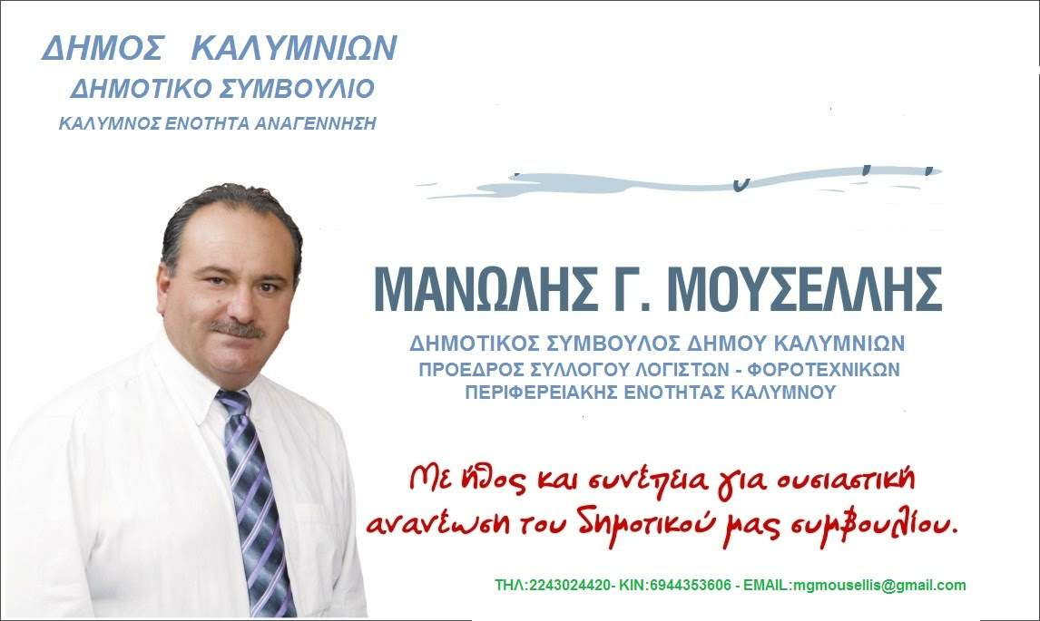 ΜΑΝΩΛΗΣ ΜΟΥΣΕΛΛΗΣ- ΠΑΡΕΜΒΑΣΗ ΠΟΦΕΕ ΓΙΑ ΔΟΥ ΚΑΛΥΜΝΟΥ