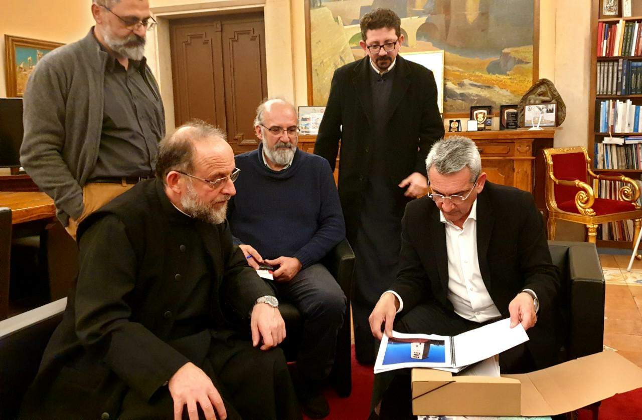 Ο Μητροπολίτης, το οποίον συνόδευαν οι συνεργάτες του, παρέδωσε στον Περιφερειάρχη την μελέτη που εκπόνησε η Ιερά Μητρόπολη Ρόδου, με τίτλο «Αποκατάσταση κτιρίου διοίκησης, κωδωνοστασίου και περιβάλλοντος χώρου, συγκροτήματος Ιερού Ναού Ευαγγελισμού Ρόδου».