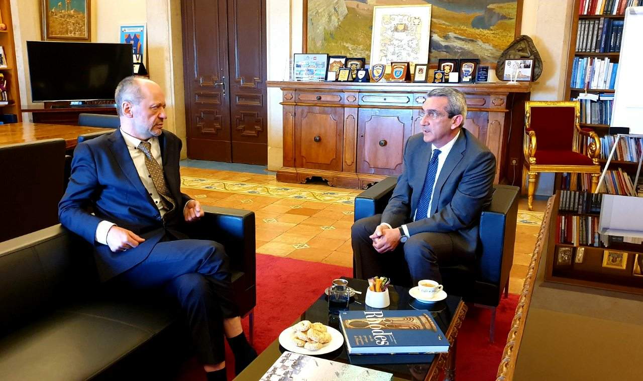 Από την πλευρά του ο κ. Popens αναφέρθηκε στη σημασία του Φράγματος Γαδουρά για την βιώσιμη διαχείριση των υδάτινων πόρων της Ρόδου και συνεχάρη τον Περιφερειάρχη, Γιώργο Χατζημάρκο για την αποφασιστικότητά του να ολοκληρώσει το έργο.