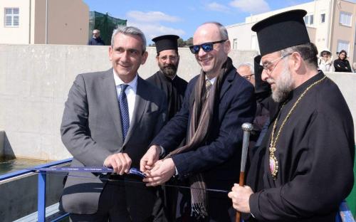 Των εγκαινίων προηγήθηκαν οι ομιλίες του Νίκου Λυμπερόπουλου, Προέδρου της Επιτροπής Παρακολούθησης της λειτουργίας του έργου, του Λάζαρου Λαζαρίδη, – μελετητή του έργου, του Περιφερειάρχη Νοτίου Αιγαίου, Γιώργου Χατζημάρκου και του Αναπληρωτή Γενικού Διευθυντή Περιφερειακής Πολιτικής της Ευρωπαϊκής Επιτροπής, Normunds Popens, ο οποίος συνεχάρη τον Περιφερειάρχη για την αποφασιστικότητά του να ολοκληρώσει το έργο, 18 χρόνια μετά την έναρξή του.