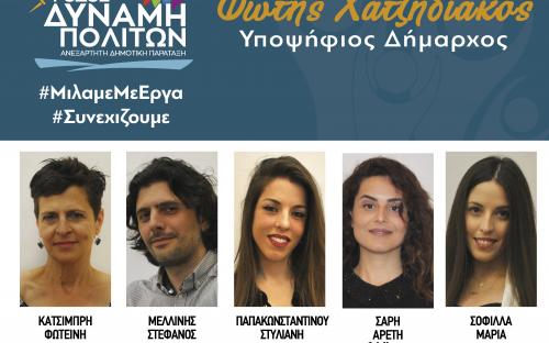 Η παράταξη «ΡΟΔΟΣ ΔΥΝΑΜΗ ΠΟΛΙΤΩΝ» ανακοινώνει 5 νέους υποψήφιους του συνδυασμού.