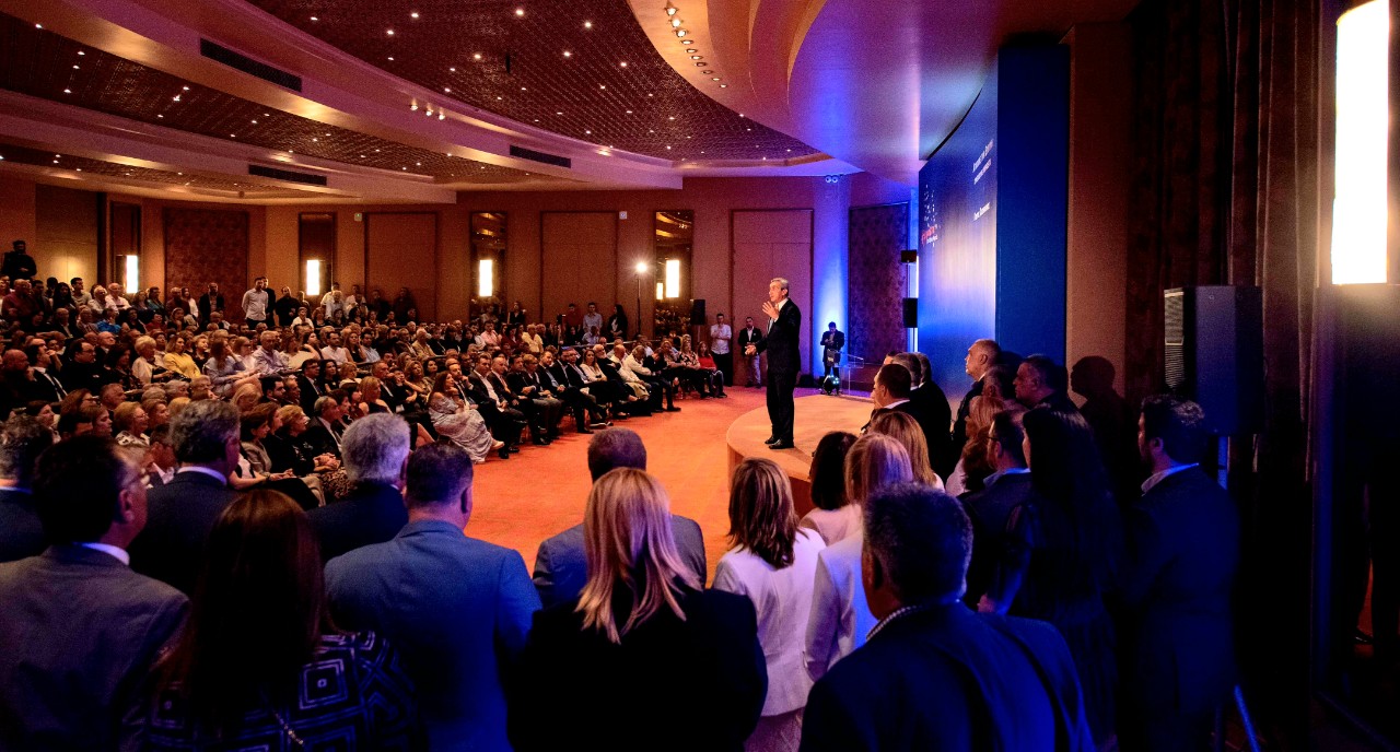 “Η παρουσία σας σήμερα εδώ, είναι η εγγύηση ότι η κατεύθυνση για το Νότιο Αιγαίο είναι μία και μόνο μπροστά!”. Με αυτά τα λόγια, ο Περιφερειάρχης Νοτίου Αιγαίου, Γιώργος Χατζημάρκος υποδέχθηκε τους εκατοντάδες των φίλων του που γέμισαν τη μεγάλη συνεδριακή αίθουσα «Δελφοί» του ξενοδοχείου “Ρόδος Παλάς” και τους χώρους έξω από αυτήν, για να παρακολουθήσουν την κεντρική πολιτική ομιλία του και την παρουσίαση των 30 υποψηφίων περιφερειακών συμβούλων της Περιφερειακής Ενότητας Ρόδου, που έγινε το βράδυ της Δευτέρας, μόλις 6 μέρες πριν από τις περιφερειακές εκλογές της 26ης Μαΐου.