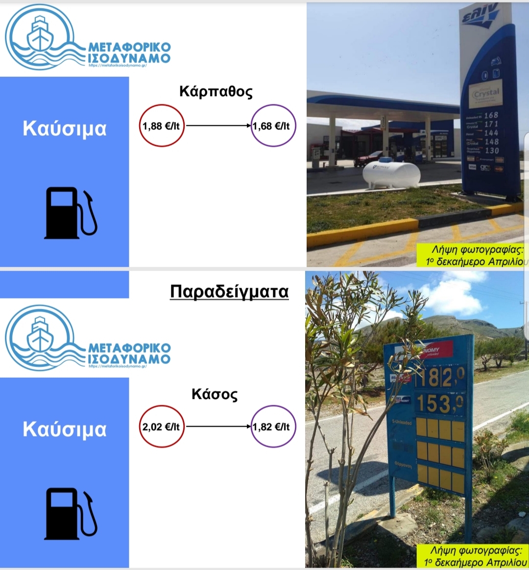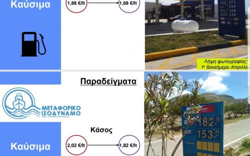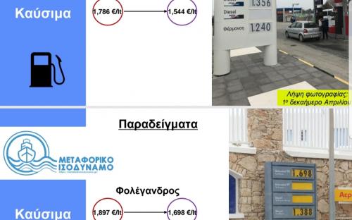 Παραδείγματα από νησιωτικά πρατήρια καυσίμων όπου μειώθηκε το κόστος μετά την εφαρμογή του ΜΙ: