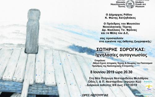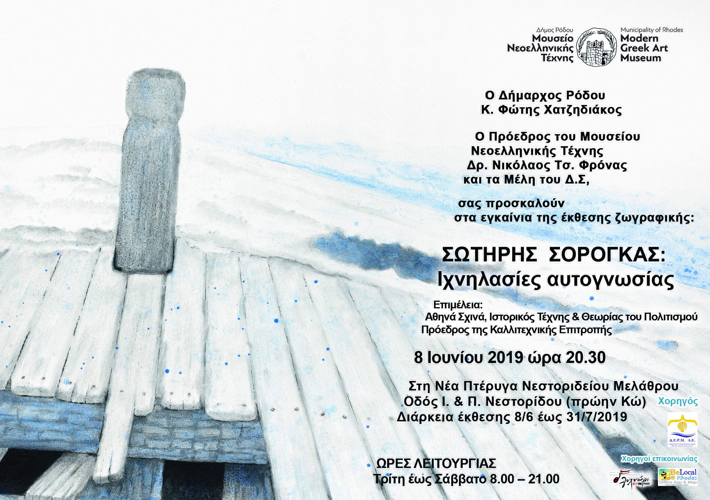 Το Μουσείο Νεοελληνικής Τέχνης του Δήμου Ρόδου, έχει την χαρά και την τιμή να παρουσιάζει στην Νέα Πτέρυγα του Νεστοριδείου Μελάθρου, μια αντιπροσωπευτική έκθεση έργων του εξαίρετου κι ευρύτερα αναγνωρισμένου ζωγράφου, όπως επίσης και Ομότιμου Καθηγητή της Ζωγραφικής στο Εθνικό Μετσόβιο Πολυτεχνείο, του κ. Σωτήρη Σόρογκα.