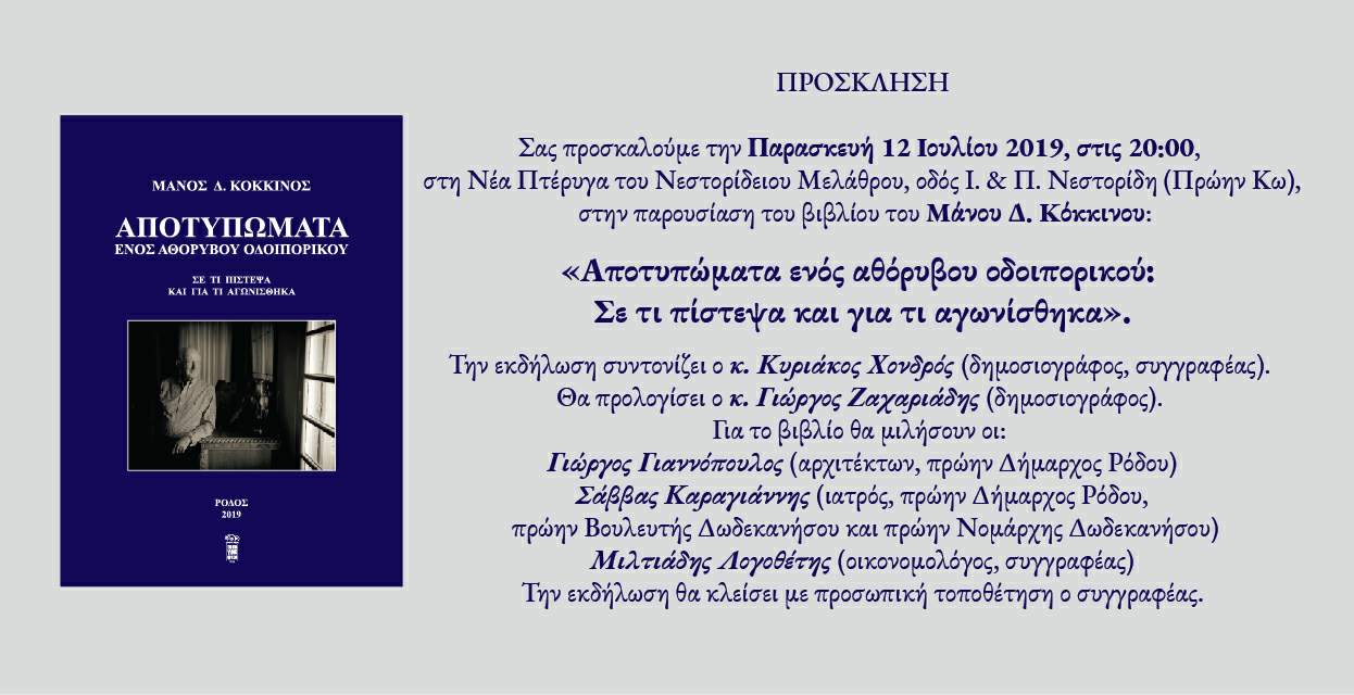 ΠΑΡΟΥΣΙΑΣΗ ΒΙΒΛΙΟΥ ΜΑΝΟΥ ΚΟΚΚΙΝΟΥ