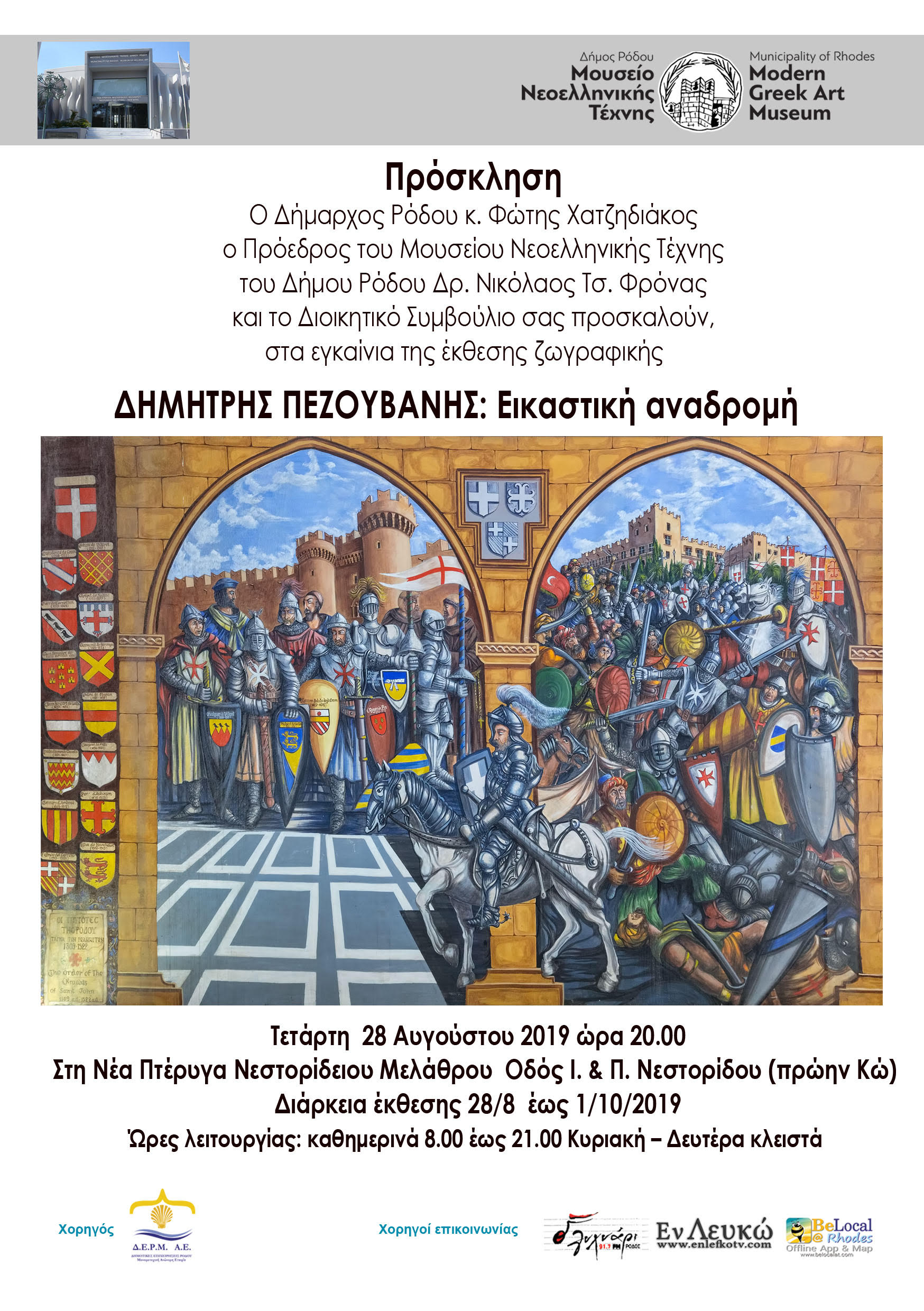 Σας προσκαλούμε να τιμήσετε με την παρουσία σας, το γνήσιο τέκνο της Ρόδου τον αείμνηστο Δημήτρη Πεζουβάνη, καθώς και το απερχόμενο Δ.Σ μετά από 8 χρόνια συνεχούς εθελοντικής προσφοράς στη διοίκηση του Μουσείου Νεοελληνικής Τέχνης του Δήμου Ρόδου.