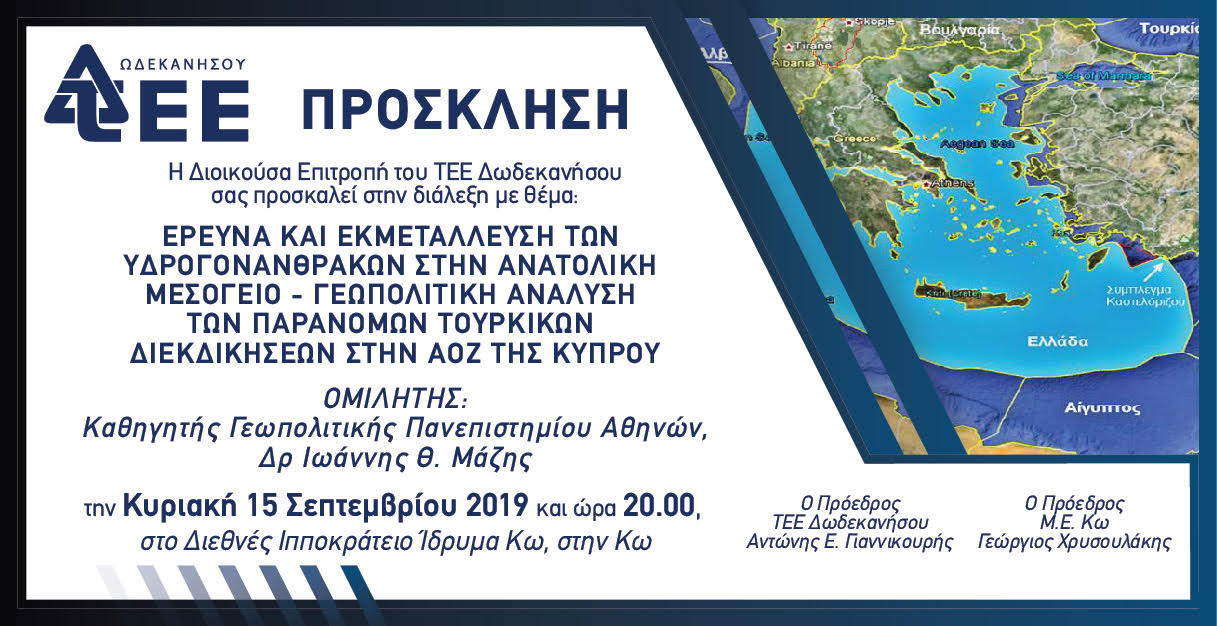 Η Διοικούσα Επιτροπή του ΤΕΕ Δωδεκανήσου σας προσκαλεί στην ομιλία με θέμα: