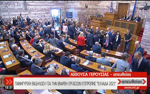 Την έναρξη των εργασιών της Επιτροπής «Ελλάδα 2021» και της συνεργασίας της με το Ίδρυμα της Βουλής των Ελλήνων για τον Κοινοβουλευτισμό και τη Δημοκρατία, ενόψει της προετοιμασίας της χώρας μας για την επέτειο της συμπλήρωσης 200 χρόνων από την Εθνική Παλιγγενεσία, κήρυξε νωρίτερα ο πρόεδρος της Βουλής, Κωνσταντίνος Τασούλας, σε πανηγυρική εκδήλωση που διεξάγεται στην αίθουσα Γερουσίας του ελληνικού Κοινοβουλίου παρουσία του προέδρου της Δημοκρατίας, Προκόπη Παυλόπουλου.