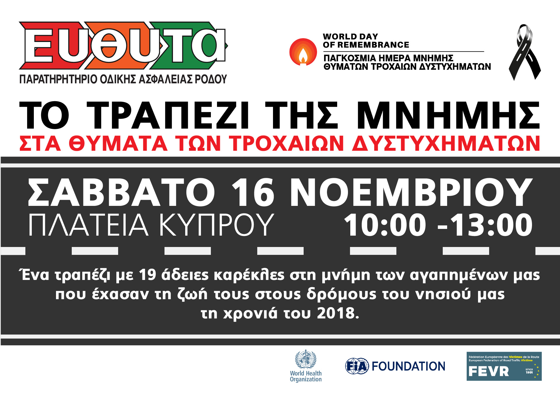 Η ΕΥΘΥΤΑ – ΠΑΡΑΤΗΡΗΤΗΡΙΟ ΟΔΙΚΗΣ ΑΣΦΑΛΕΙΑΣ ΡΟΔΟΥ, ενεργό μέλος της FEVR τιμά την Ημέρα Μνήμης από το 2006, με Όραμα ΜΗΔΕΝ Θάνατοι στους δρόμους.