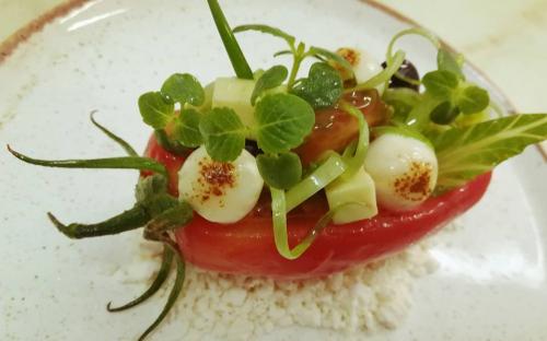Φουσκοσαλάτα… Πιάτο, σαν χρυσαφένιο κόσμημα της γαστρονομίας. Ένα από τα άπειρης νοστιμιάς, που δημιούργησε ο διακεκριμένος Καλύμνιος, Δημήτρης Κουλλιάς, Executive Chef, ο οποίος εργάζεται στην εταιρεία Horizon Beach Resort στην Κω. Ο σεμνός, αλλά αξεπέραστος σε τεχνική Σεφ.