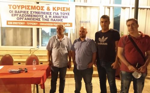 Αντιπροσωπεία της Επιτροπής Αγώνα, είχε συνάντηση τον επικεφαλής της δημοτικής παράταξης “Λαϊκή Συσπείρωση”, Τάκη Πότσο, ολοκληρώνοντας τον κύκλο των επαφών με όλες τις δημοτικές παρατάξεις για την ενημέρωση τους σχετικά με το αίτημα για απαλλαγή από τα δημοτικά τέλη των ανέργων, των ενταγμένων στα μέτρα στήριξης και των ελαστικά απασχολούμενων εργαζομένων του τουρισμού. Του παρέδωσε το σχετικό υπόμνημα που έχει δώσει σε όλες τις παρατάξεις.
