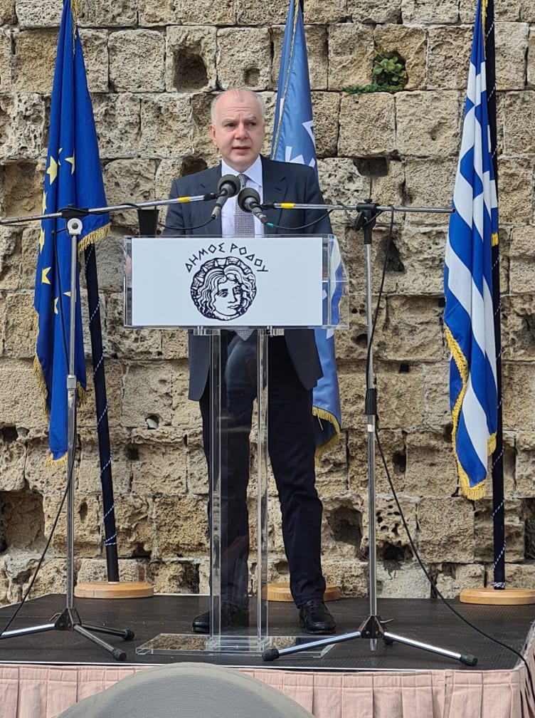 Για τη σημερινή Δημοτική Αρχή η σημερινή εκδήλωση δεν είναι η διεκπεραίωση μιας τυπικής υποχρέωσης. Αντίθετα, είναι μια ευκαιρία να επιβεβαιώσουμε με πράξεις και έργα την προσήλωσή μας στο σύγχρονο όραμα για τη Ρόδο και το μέλλον της. Το όραμα, αυτός ο ευλογημένος τόπος, να ξαναβρεί την σμαραγδένια λάμψη του.