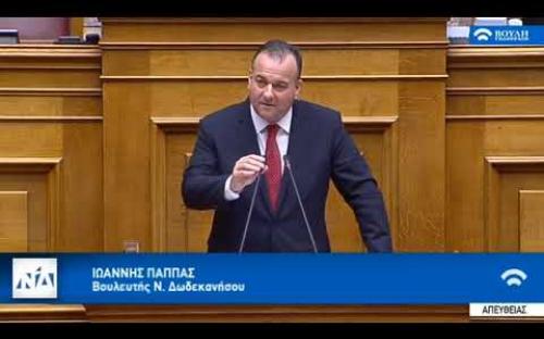 Η ομιλία του Βουλευτή Δωδ/σου Ιωάννη Παππά για τον Κώδικα Ψηφιακής Διακυβέρνησης και Ηλεκτρονικών Επικοινωνιών