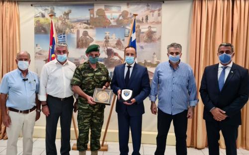Οι διοικήσεις των Επιμελητηρίων και της ΓΣΕΒΕE, κατά την παραμονή τους στο νησί, επισκέφθηκαν το στρατόπεδο Διοίκησης Άμυνας (ΔΑΝ) Μεγίστης όπου συνεχάρησαν τον διοικητή για το έργο του. Ακολούθησε σεμνή τελετή κατά την οποία απονεμήθηκε στους προέδρους το έμβλημα της ΔΑΝ Μεγίστης για τη συμβολική αλλά και ουσιαστική επίσκεψή τους στη Μονάδα.