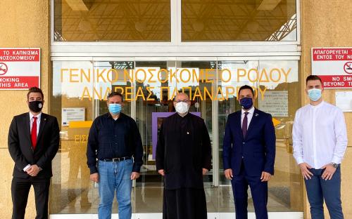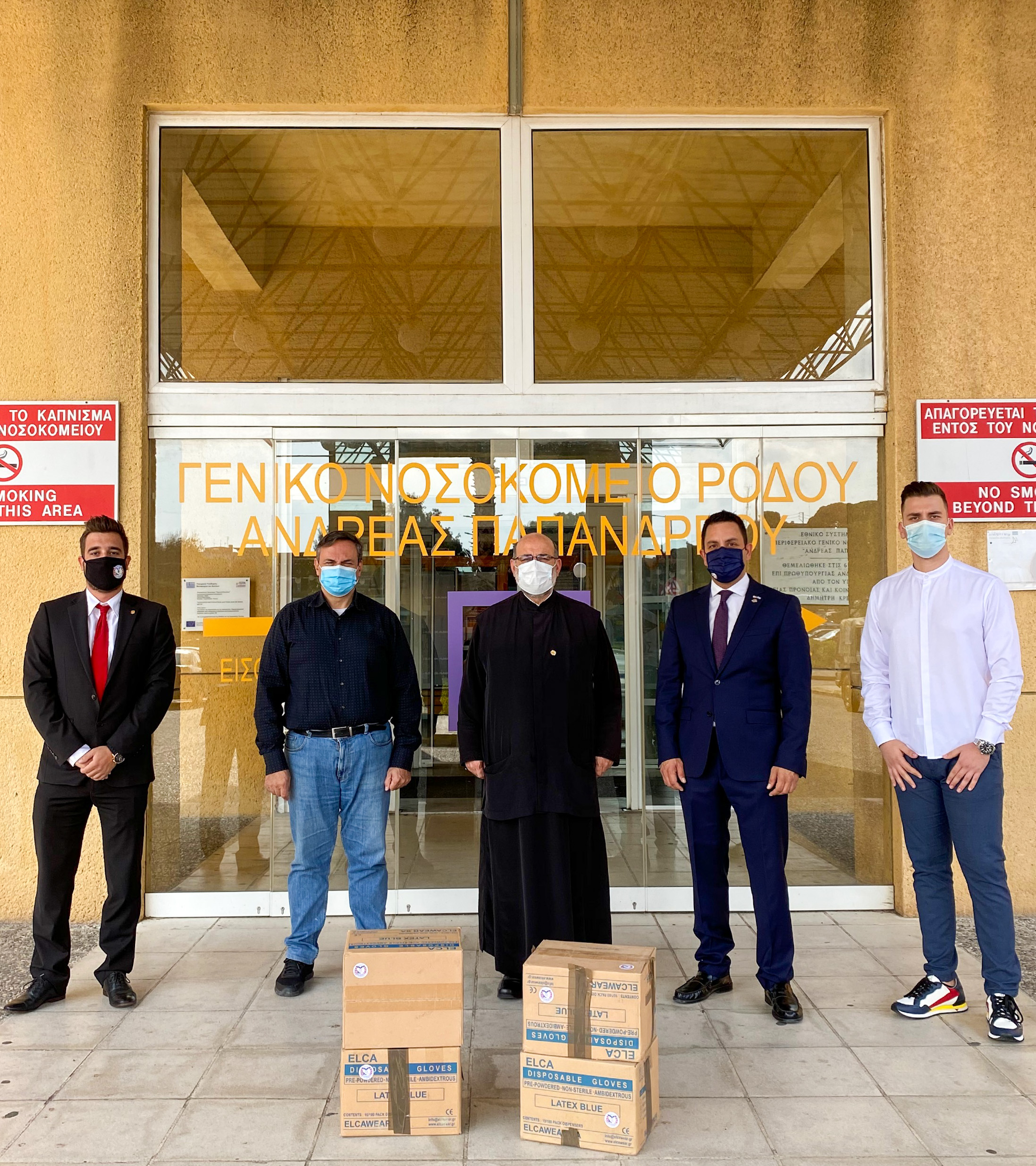 Ο Αντιπρόεδρος Ελληνισμού της ΑΧΕΠΑ ΕΛΛΑΣ (VP of Hellenism D25) κ. Αντώνης Γιαννικουρής και ο Πρόεδρος του Τμήματος ΑΧΕΠΑ Ρόδου π. Χρυσόστομος Παπαλέξης, συνοδευόμενοι από τον Διευθυντή Δημοσίων Σχέσεων κ. Μηνά Ηλιακώστα και το μέλος της διοίκησης κ. Τσαμπίκο Παπαλέξη, επισκέφθηκαν το Γενικό Νοσοκομείο Ρόδου και παρέδωσαν 4000 χειρουργικά γάντια μιας χρήσης.