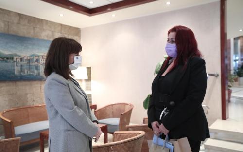 Ανθρώπινη, προσιτή, με ισχυρή προσωπικότητα, που εμπνέει απεριόριστη εμπιστοσύνη, η Πρόεδρος της Ελληνικής Δημοκρατίας Κατερίνα Σακελλαροπούλου, κατά την επίσκεψή της στη Ρόδο, τίμησε με συνάντηση τα παροικιακά σωματεία, που εκπροσωπήθηκαν από την Πρόεδρο της Ένωσης Καλυμνίων Ρόδου Μαρία Βάλλα. Η συνάντηση, πραγματοποιήθηκε στο φουαγιέ του ξενοδοχείου Meditteranean.