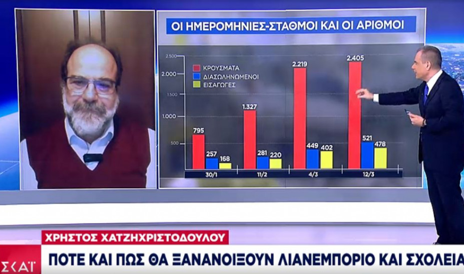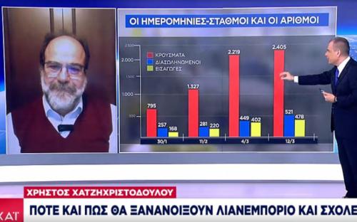 Για την επαναλειτουργία της αγοράς και το άνοιγμα των σχολείων μίλησε στον ΣΚΑΪ και το Νίκο Στραβελάκη ο καθηγητής επιδημιολογίας του Πανεπιστημίου Θεσσαλίας και μέλος της Επιτροπής Λοιμωξιολόγων Χρήστος Χατζηχριστοδούλου.