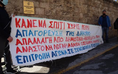 Σε συνθήκες “πολέμου”, όπου βρισκόμαστε η διεκδίκηση πρέπει να είναι: Καμιά διακοπή σε σπίτι Ανέργου, χαμηλόμισθου, χαμηλοσυνταξιούχου”, απαλλαγή από δημοτικά, ανταποδοτικά και κάθε είδους τέλη, αναστολή της πληρωμής των λογαριασμών όσο διαρκεί η κρίση.