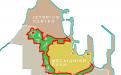 Η ζώνη αυτή σήμερα περιλαμβάνει μεταξύ άλλων, το Παλιό Νοσοκομείο , τη Ροδιακή ¨Έπαυλη, το Θέρμαι, τη Σχολή Τουριστικών Επαγγελμάτων , το Γηροκομείο, τη Ζώνη Πρασίνου της τάφρου, το Πανεπιστήμιο Αιγαίου.