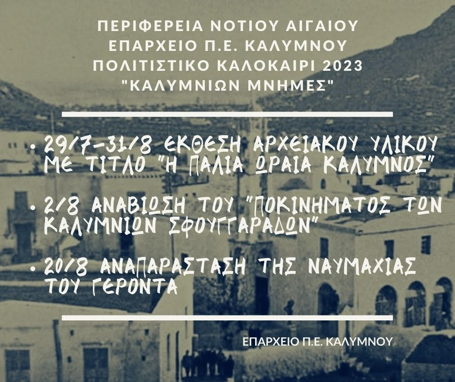 ΠΟΛΙΤΙΣΤΙΚΟ ΚΑΛΟΚΑΙΡΙ 2023 ΕΠΑΡΧΕΙΟΥ Π.Ε. ΚΑΛΥΜΝΟΥ