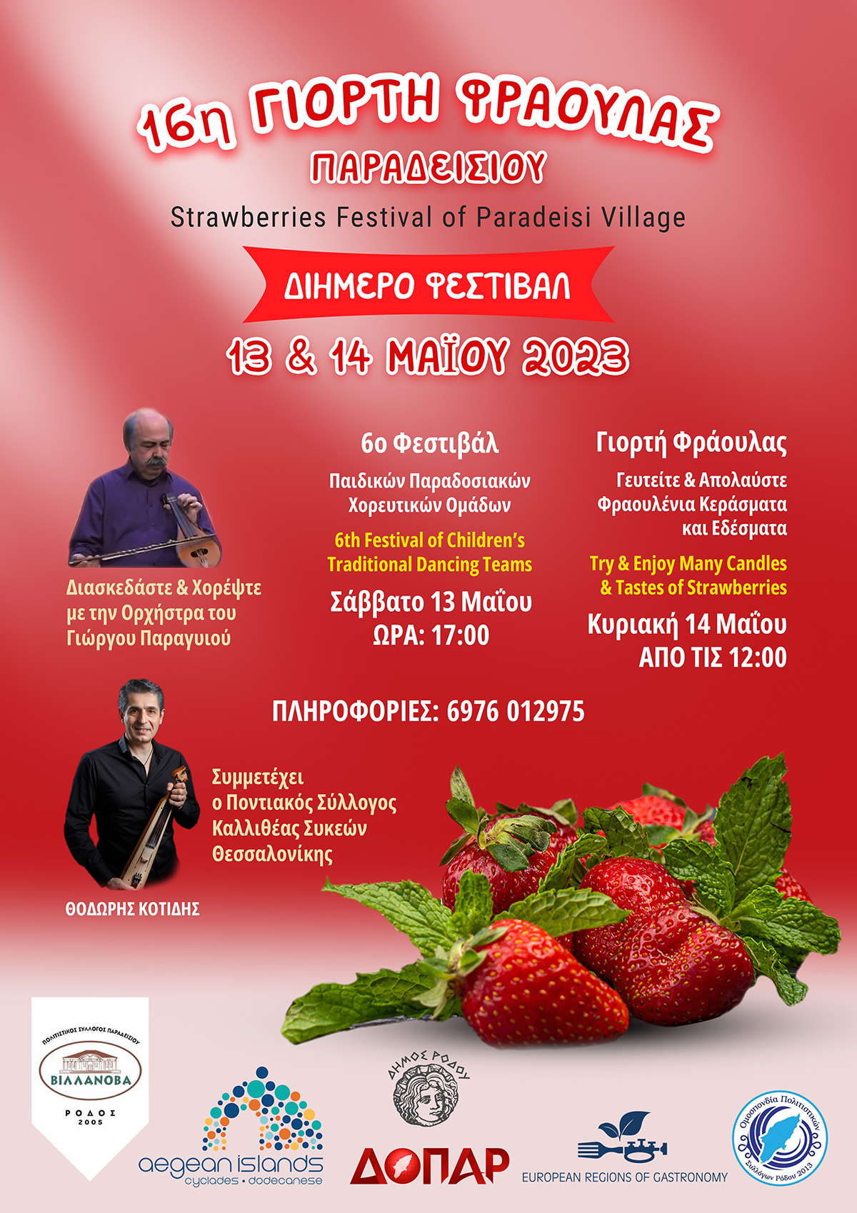 16η Γιορτή Φράουλας Παραδεισίου – 13 & 14 Μαΐου 2023
