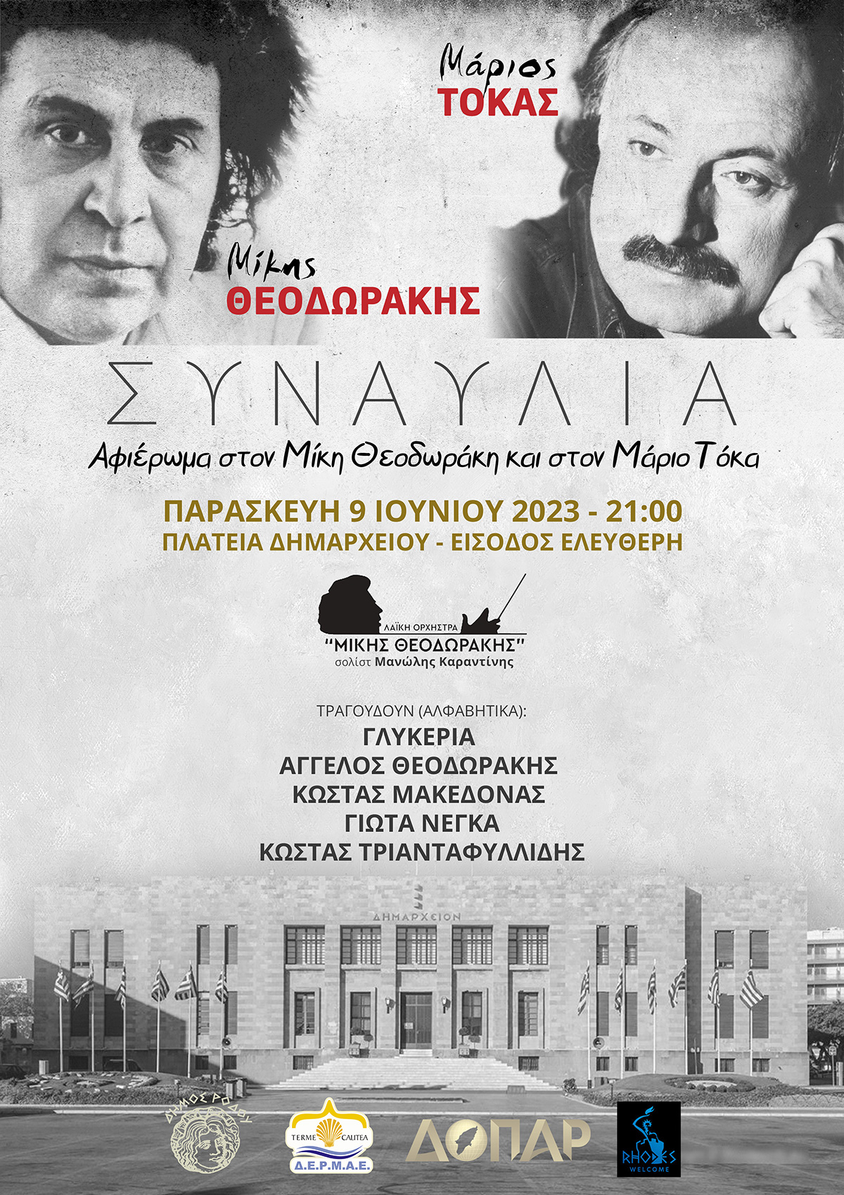 Η Λαϊκή Ορχήστρα “Μίκης Θεοδωράκης” με τους εξαιρετικούς μουσικούς της και με σολίστ στο μπουζούκι  τον   Μανώλη Καραντίνη  και οι αγαπημένοι ερμηνευτές  Γλυκερία, Κώστας Μακεδόνας, Γιώτα Νέγκα, τον Κώστα Τριανταφυλλίδη και Άγγελος Θεοδωράκης θα μας χαρίσουν αξέχαστες ερμηνείες στα πιο γνωστά τραγούδια του Μίκη Θεοδωράκη και του Μάριου Τόκα σε μια ιδιαίτερη μουσική εναλλαγή.