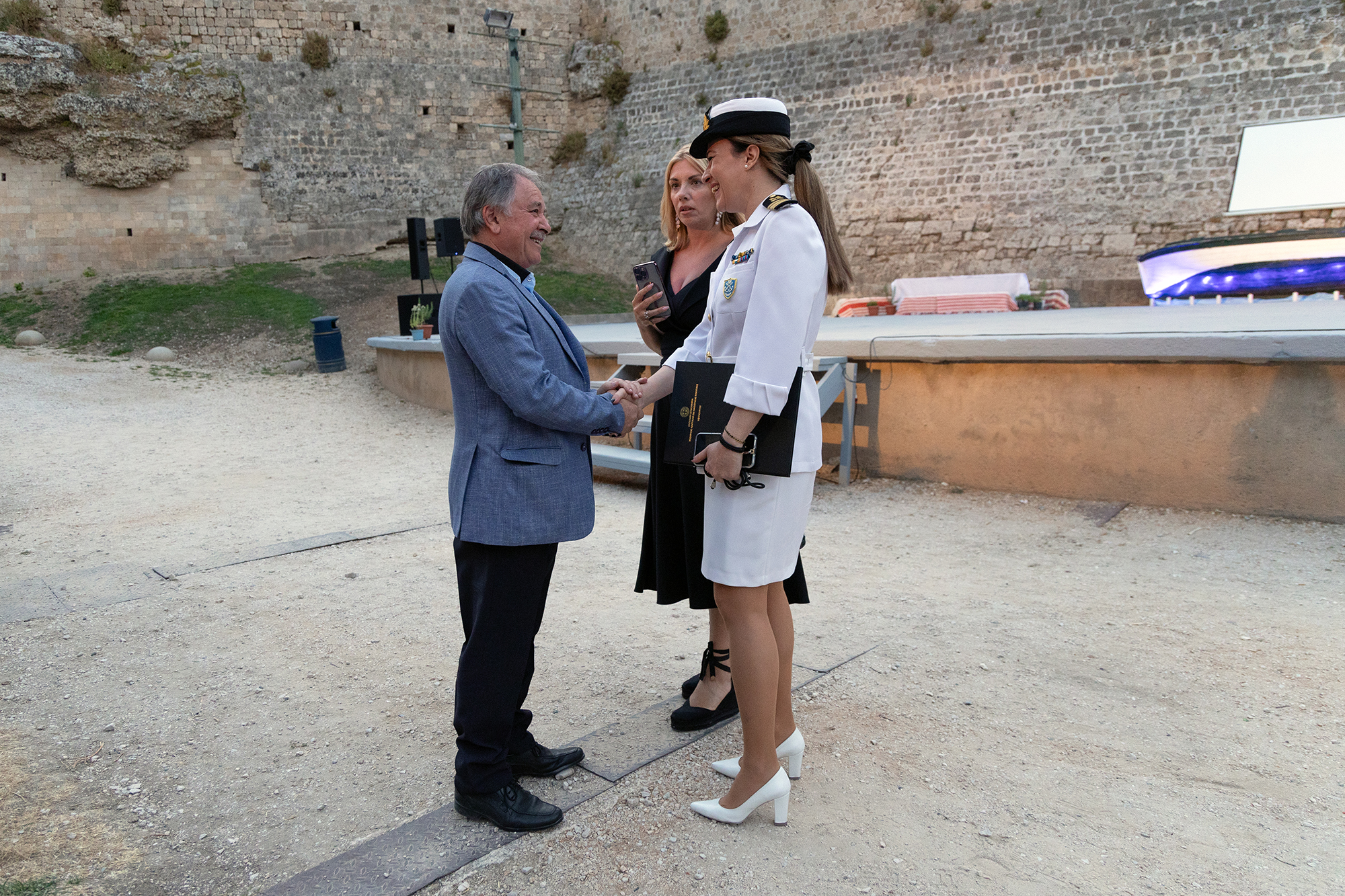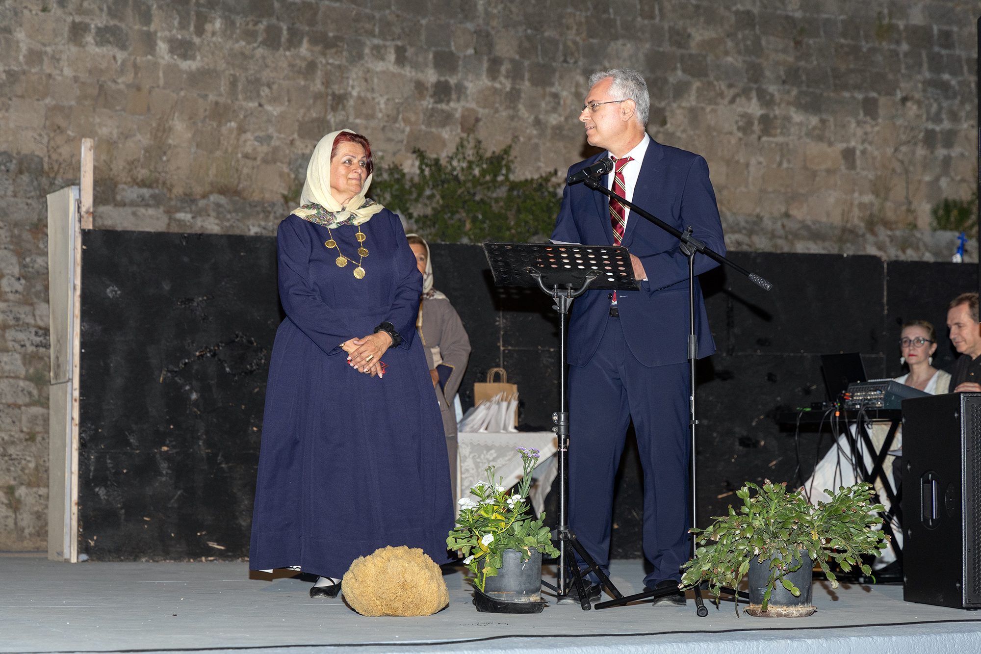 Με τιμώμενα πρόσωπα, τον Υφυπουργό Ναυτιλία και Νησιωτικής Πολιτικής κ. Γιάννη Παππά ως τον πλέον αρμόδιο κυβερνητικό για τη σπογγαλιεία, την πανίσχυρη Εμπορική Ναυτιλία της εποχής και τον Καθηγητή Νευροχειρουργικής ΕΚΠΑ κ. Στέφανο Κορφιά, εμπλουτίσθηκε η πολιτιστική παράσταση, με διοργανωτές, τα μέλη του C.I.D. UNESCO – Τμήμα Ρόδου.