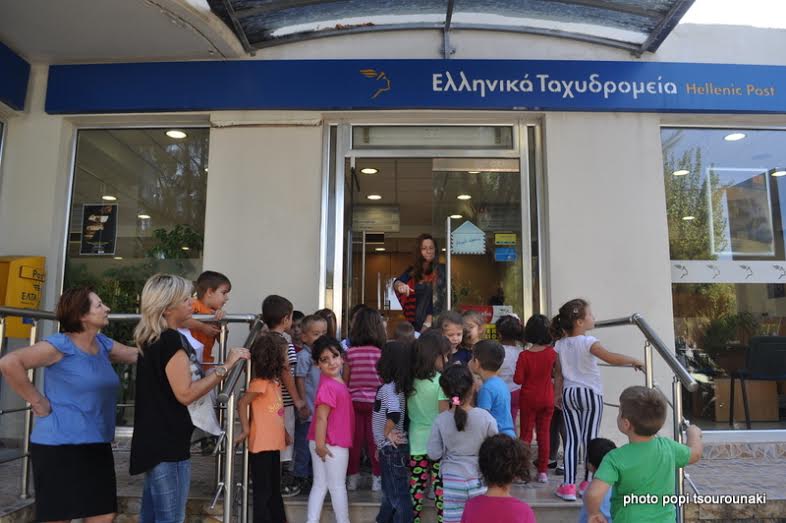 - Στόχος της δράσης ήταν η διερεύνηση και η προώθηση της κατανόησης του κόσμου που τα περιββάλλει καθώς και η αλληλεπίδραση τους με τον κοινωνικό περίγυρο. Οι υπάλληλοι του Ταχυδρομείου υποδέχτηκαν τα παιδιά με χαμόγελο και με μεγάλη χαρά τους μίλησαν για τους τρόπους αποστολής αλλά και παραλαβής γραμμάτων και δεμάτων, έδειξαν και εξήγησαν πως λειτουργούν οι ταχυδρομικές θυρίδες και τέλος τους χάρισαν γραμματόσημα για να στείλουν και αυτά το δικό τους "γράμμα."