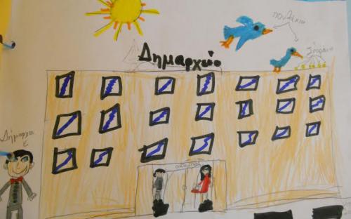 - Οι μαθητές επίσης, ξεναγήθηκαν στους χώρους του Δημαρχείου και χάρισαν στον Δήμαρχο μία πολύ ωραία βιβλιοδετημένη εργασία, με ζωγραφιές τους, στις οποίες αποτύπωσαν με τα χρώματά τους το θέμα: «Το νησί της Καρπάθου… Όπως το φαντάζονται οι μαθητές της Γ΄ Τάξης του 1ου Δημοτικού Σχολείου «Ποτίδαιον».