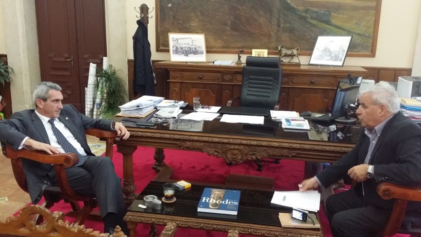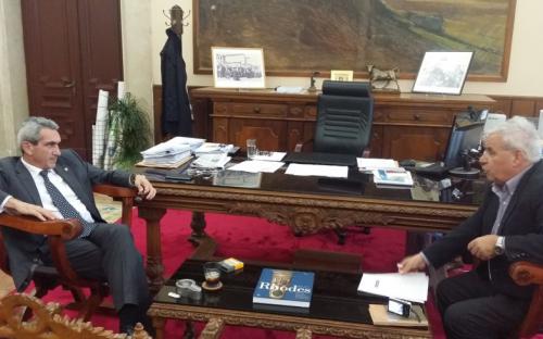 Τέλος, ο Δήμαρχος Πάτμου επισκέφτηκε στο γραφείο του τον Αντιπεριφερειάρχη Ενέργειας & Φυσικών Πόρων κ. Γιάννη Φλεβάρη, τον οποίον ευχαρίστησε για το ενδιαφέρον που δείχνει για τα έργα αφαλάτωσης στο νησί της Πάτμου.