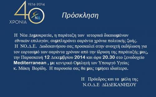 ΝΟΔΕ ΔΩΔΕΚΑΝΗΣΟΥ - ΠΡΟΣΚΛΗΣΗ ΓΙΑ ΕΠΕΤΕΙΟ 40 ΧΡΟΝΩΝ